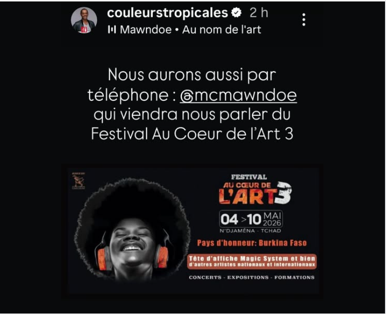 Nous serons en direct sur Couleurs Tropicales – RFI pour parler du Festival au Cœur de l’Art.
